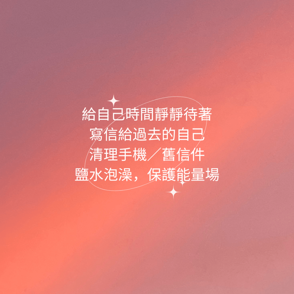 可能會夢見某些人,或者突然想起從前的片段。你不一定要聯絡他們,但可以在心裡寫一封信、做一場內在道別儀式。